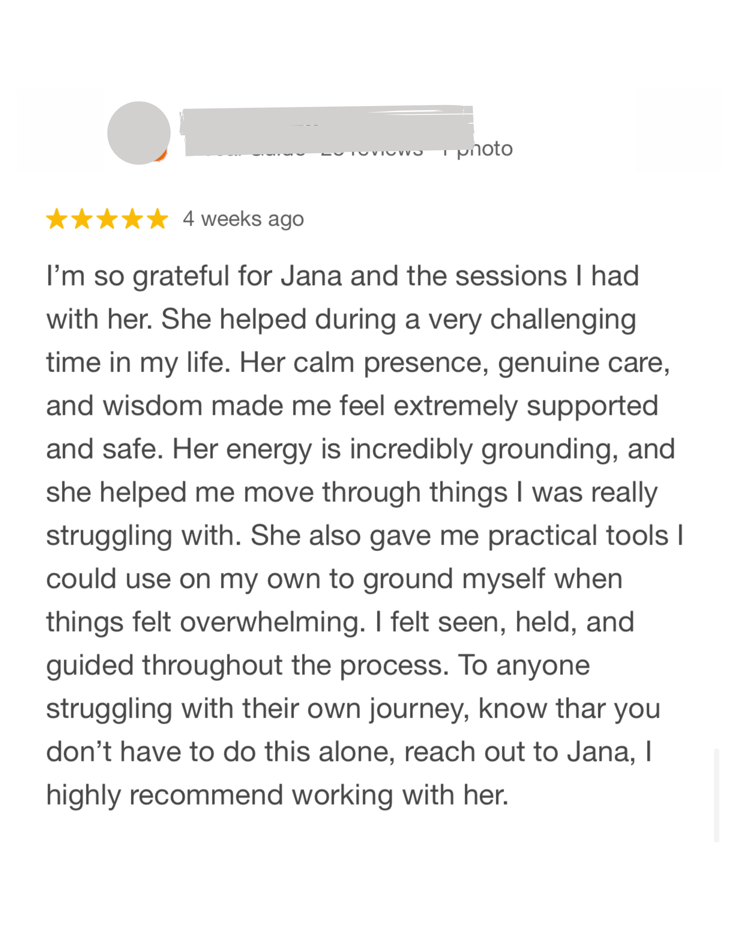 Jana is a trauma-informed Somatic Hypnotherapist, Health Coach, and Kundalini Yoga & Meditation Teacher, with over a decade of personal exploration, study, and practice in self-development, spirituality, and healing.